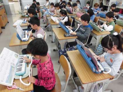 「あのね」という曲を練習しました。 先生のオルガンに続けて吹いていきます。