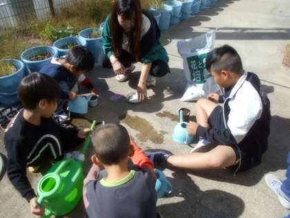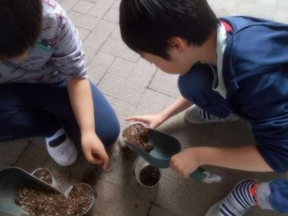 11月8日(水)に,スナップえんどうの種をポットにまきました。大きく育ちますように!