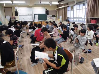 「もみじ」を二部合唱で歌う練習をしました。 メロディーをずらして歌うのが難しそうです。