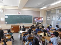 消火器、消火栓、火災探知機を見つけて、校舎の地図にシールを貼りました。