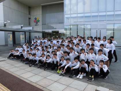 演奏終了後、ビッグアイの前で記念写真を撮りました。