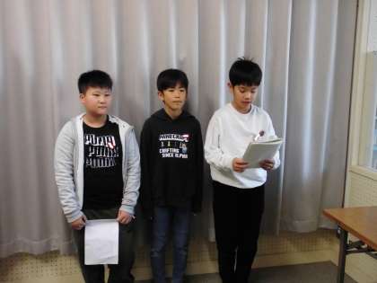 今日の全校朝会では先週開催された、連合音楽会の視聴とその活動を通じて学んだことを5年生に発表してもらいました。
