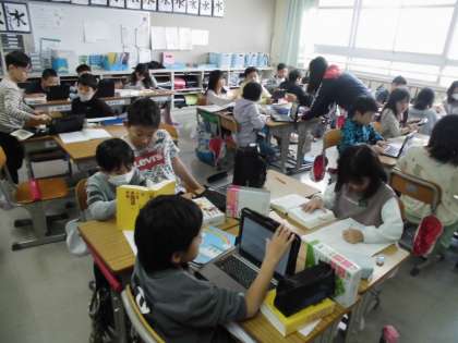 自分が担当する文字で始まることわざを辞書やタブレットで調べました。