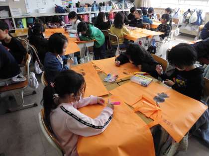 作品袋に好きな絵を書きました。 図工の作品を入れて持って帰ります。