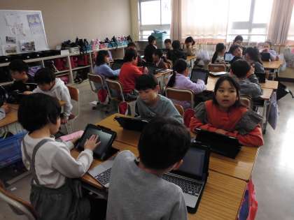 タブレットでクイズをしたり、明日の予定を聞いたりしていました。