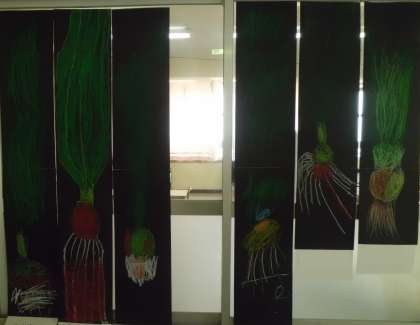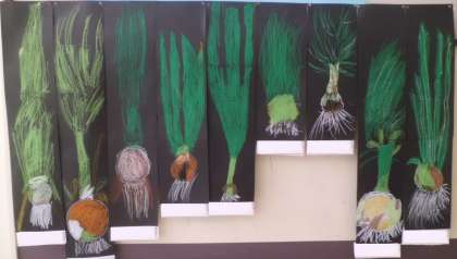 ひまわり学級で栽培、収穫した「玉ねぎ」の絵です。どれも特徴をよくとらえています。
