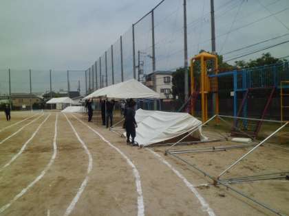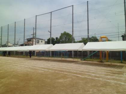 体育大会当日の暑さ対策に、PTA予算で児童用テントを設営していただきました。ありがとうございます。
