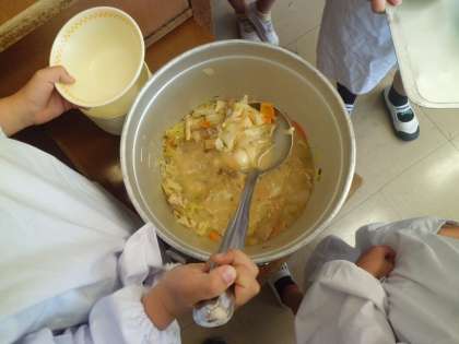 1年生も給食の配膳に慣れてきました。