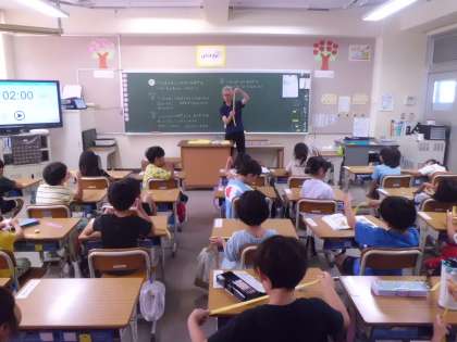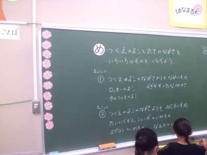 算数で机の縦と横の長さと様々なものの長さを比べています。