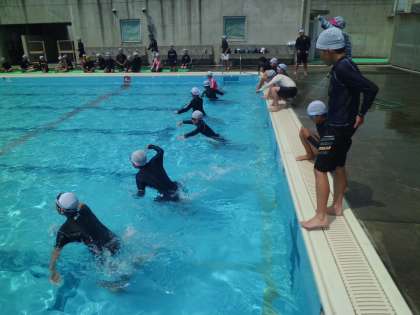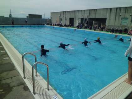午後は、「ウォーターフェスティバル2024」です。まずは、選手宣誓があり、最初の種目は水中走です。
