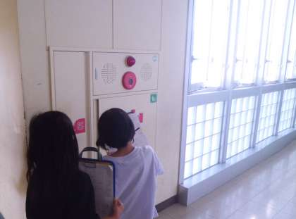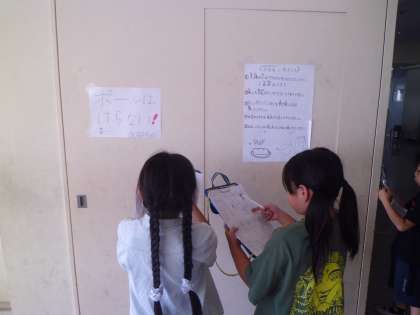 社会科で「暮らしの安全を守る」をテーマに学習しています。今日は、本校の防火設備について、校内地図をもって校内を巡り確認しました。