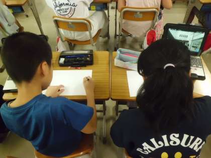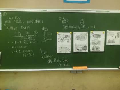 クラスで「はとぶえ」出品作品の制作に取り組んでいます。