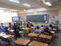 国語の時間、担任に読み聞かせをしてもらっています。