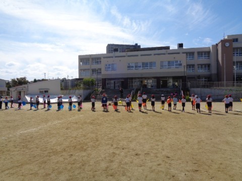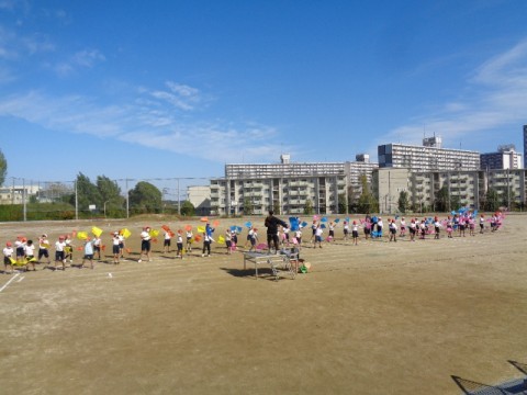 手旗を使ったダンスです。本番当日を目指して頑張っています。