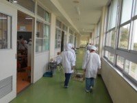 サラダにかかっているドレッシングはみじん切りにしたたまねぎや和からしの入った手作りドレッシングです。