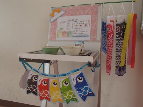 今は、もうすぐこどもの日なので、こいのぼりの飾りつけになっています。