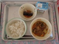 今日の献立は、ごはん・みそ汁・卯の花・さばの塩焼・牛乳でした。