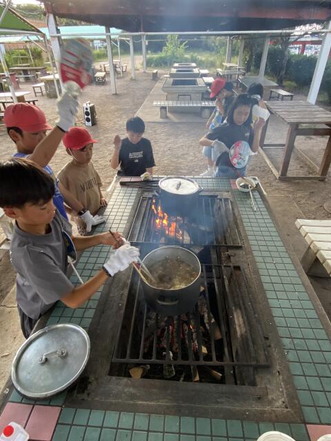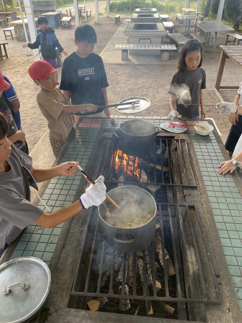 子どもたちは臨海宿泊学習での飯盒炊飯の経験を活かし、手順を確認しながら