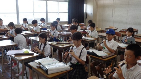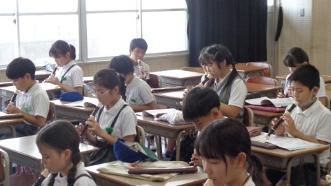 ゆびづかいを確認しながら,一生懸命練習しています。