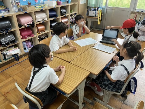 来週の校外学習に向けて,同じ班の1,2年生で交流会を行いました。