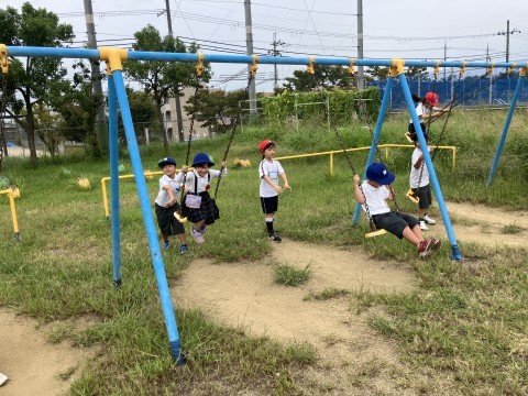 キャッチボールをしたり,ブランコを交代したりして遊びました。
