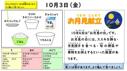 【小学校】本日の給食~10月3日(金)~