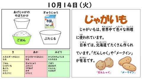 【小学校】本日の給食~10月14日(火)~