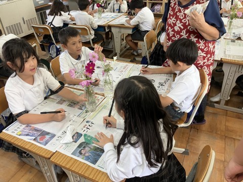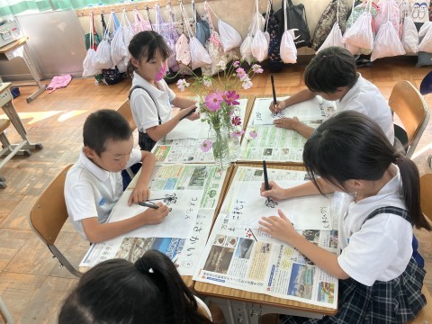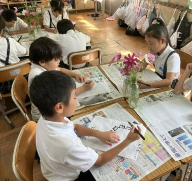 そんな中,2年生では図工の時間に,秋桜(コスモス)の絵を描きました。