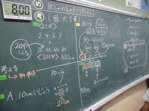 今日の問題は、「80cmの四分の一は何cm?」という問題です。