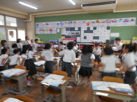 今日は,子どもたちがくじらぐもに飛び乗る場面を学習しました。