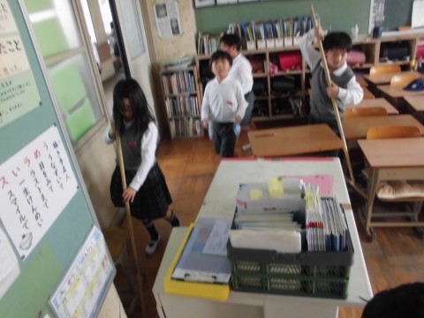 ものを動かしたり、下までほうきを入れて隅々までごみを探してそうじができるようになってきました。