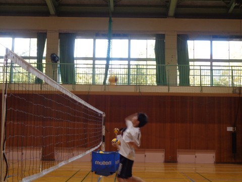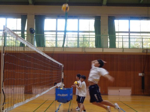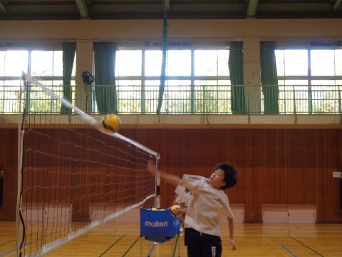 上がったボールにあわせてうまくジャンプし,スパイクしています。