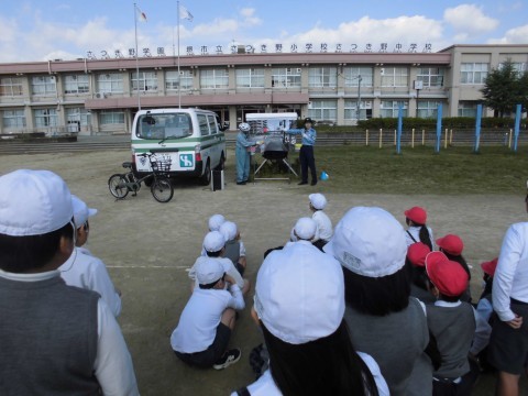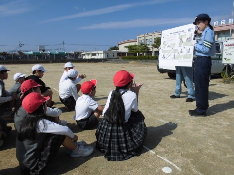 警察の方や地域の方々にご協力いただき、交通安全教室(自転車の部)をしました。
