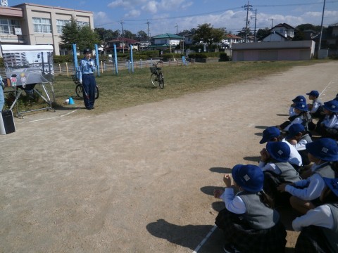 警察の方に安全な歩行の仕方,自転車の乗り方を教わりました。