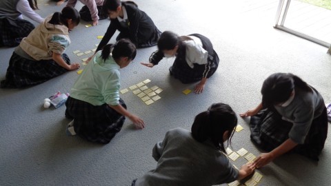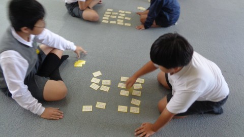 さつき野ホールで,6年生が百人一首をしていました。
