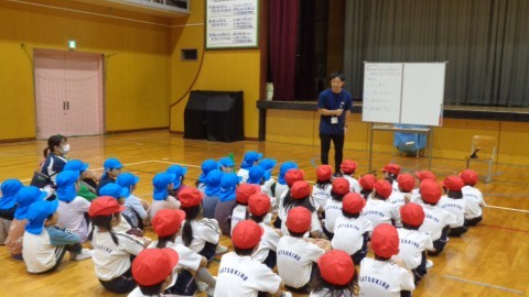 11月6日(木)2時間め,1年生は,美原ひがしこども園の5歳児を迎えて,いっしょに運動を行いました。