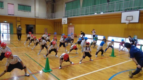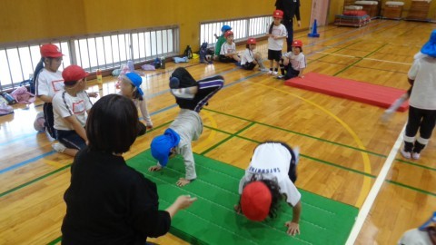 体操からスタートし,リレーをしたり,マット運動をしたりして,交流を深めました。