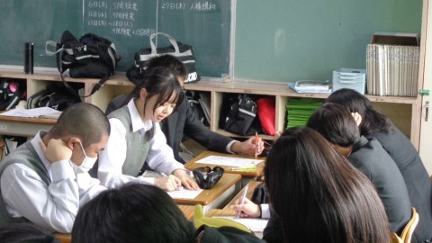 今日は「生活とお金との関わりについて考えよう」をテーマにグループで考えています。