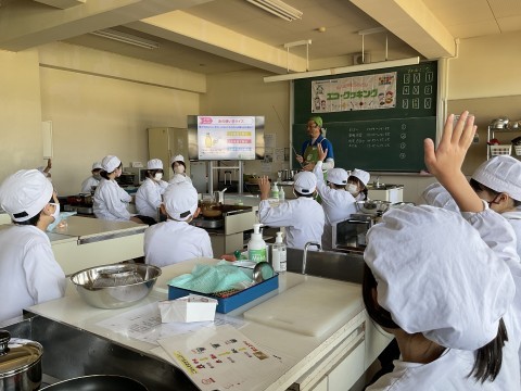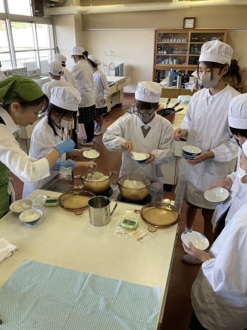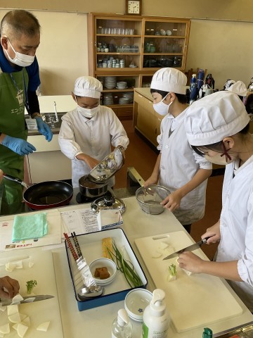 班で協力し,「ご飯」「みそ汁」「エコふりかけ」を調理しました。