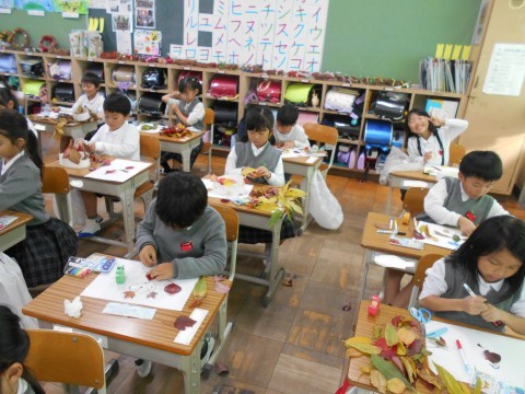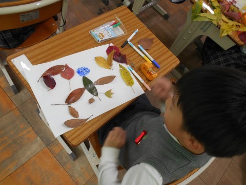 赤やオレンジ,黄色など,きれいな色の葉っぱを集めてきたので