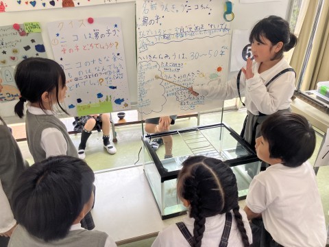 一年生にじまんの生きものを紹介してプレゼンテーションの能力を高める学習を行いました。