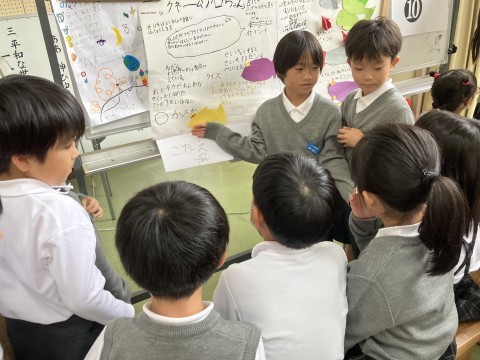 自分が発表したら終わりではなく,お友だちの発表もしっかりと聞いて,間違っていたら訂正してあげたり,1年生の様子を見守ってあげたり,班の仲間を大切に協力して学び合った成果があらわれていました。