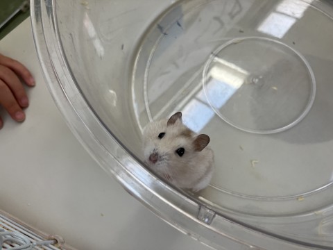 「元気か確認してハムスターの顔を見てから帰るねん」と家から持ってきた児童は自分の生きものに責任をもって,お世話をしています。