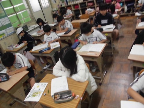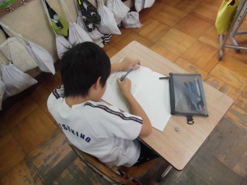 分かりやすく説明するために、考えを書く時間は集中して図や式を書いています。
