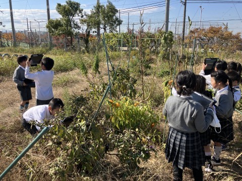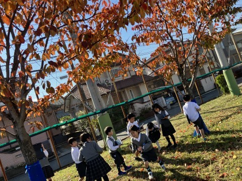 晴天の中,子どもたちは秋を感じながら学習をしました。