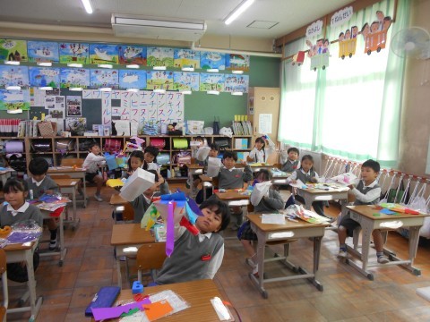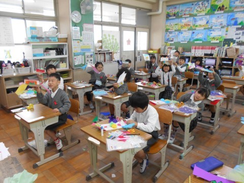 かたい紙や,お花紙,折り紙など,素材を楽しんで工作できました。