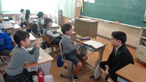 また、この授業は「初任者・発展研修」として、教育センターの専門指導員の先生にもご参観いただき、授業後、ふりかえりを行いました。