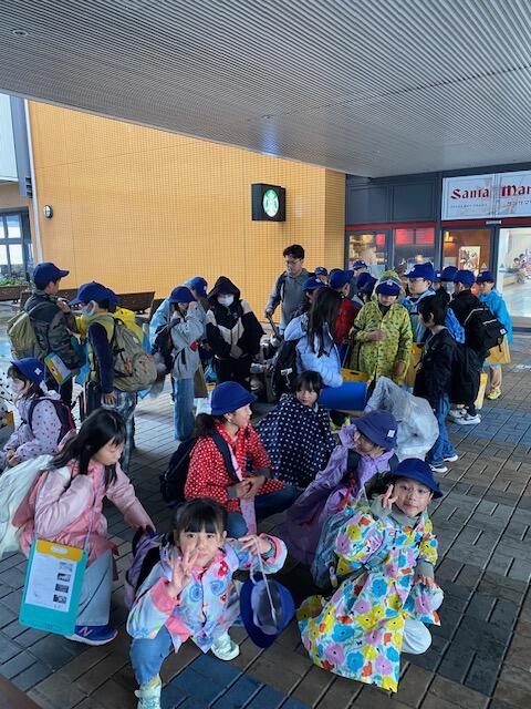 雨が強いですが、カッパをたくさんの児童が持ってきていたので何とかしのいでいます。