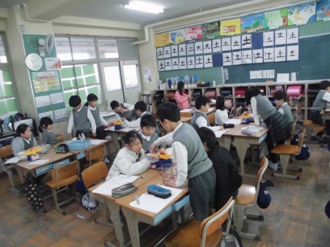 だれの消しゴムが一番重いのかを調べるために,自分の消しゴムは木のブロック何個分なのかをそれぞれ調べました。