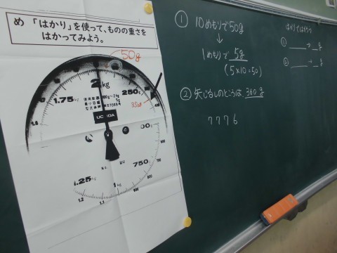 昨日はてんびんと,1gの代わりものをたくさん使って重さを数値化しましたが、今日ははかりを使いました。